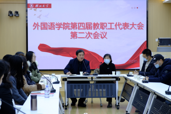 1月19日,湖北大学外国语学院在逸夫人文楼A3014隆重召开第四届教代会第二次会议,40名正式代表参加会议,学院党委书记刘建伟主持会议。
