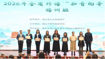为应对入境旅游市场持续升温带来的外语导游人才紧缺问题,4月11日,湖北省文化和旅游厅与湖北大学联合主办、湖北大学外国语学院承办了2026年全省外语“知音向导”培训班。来自全省各市州14所高校及相关文旅机构的200名师生参训,涵盖英语、法语、葡萄牙语、德语、俄语、日语、韩语等10余个语种。